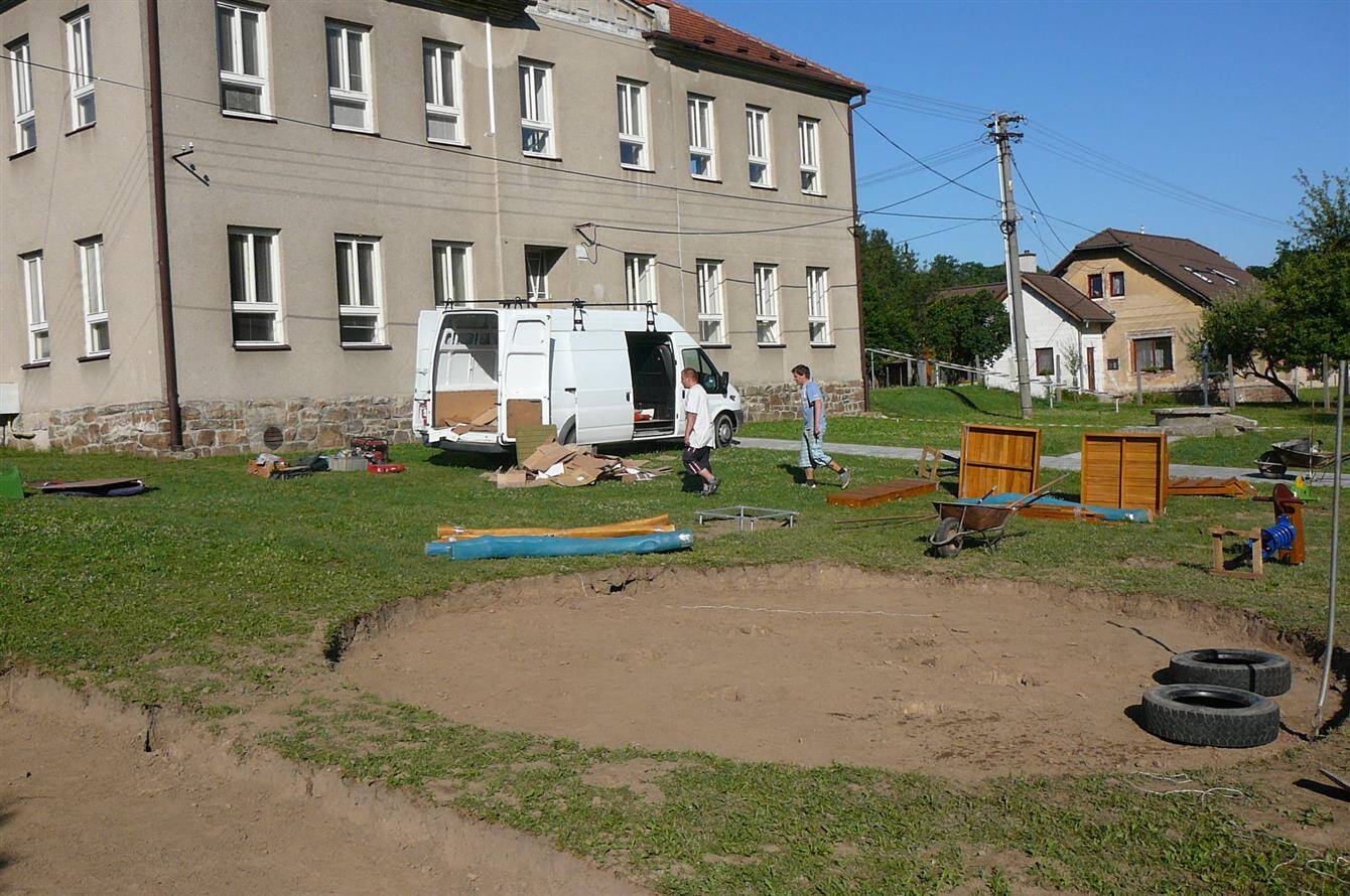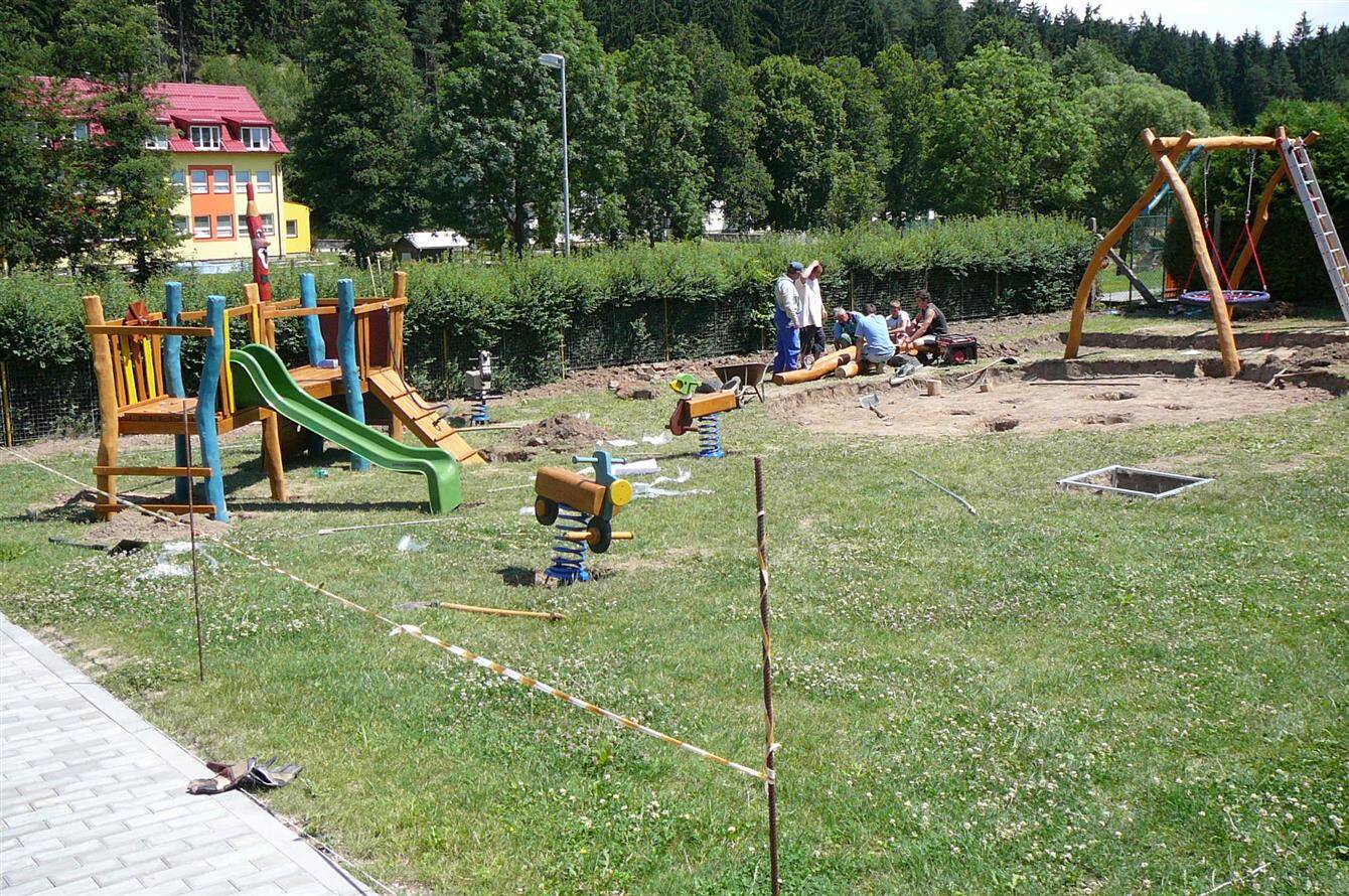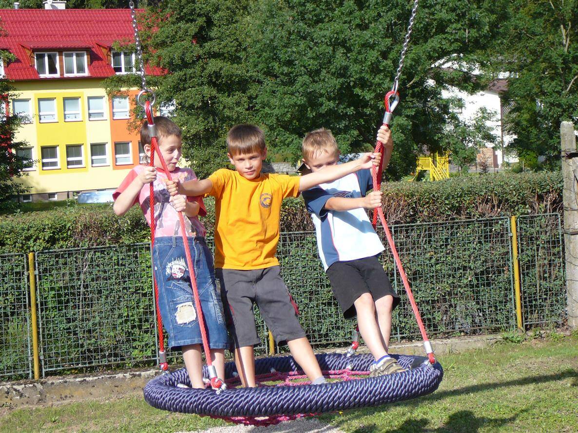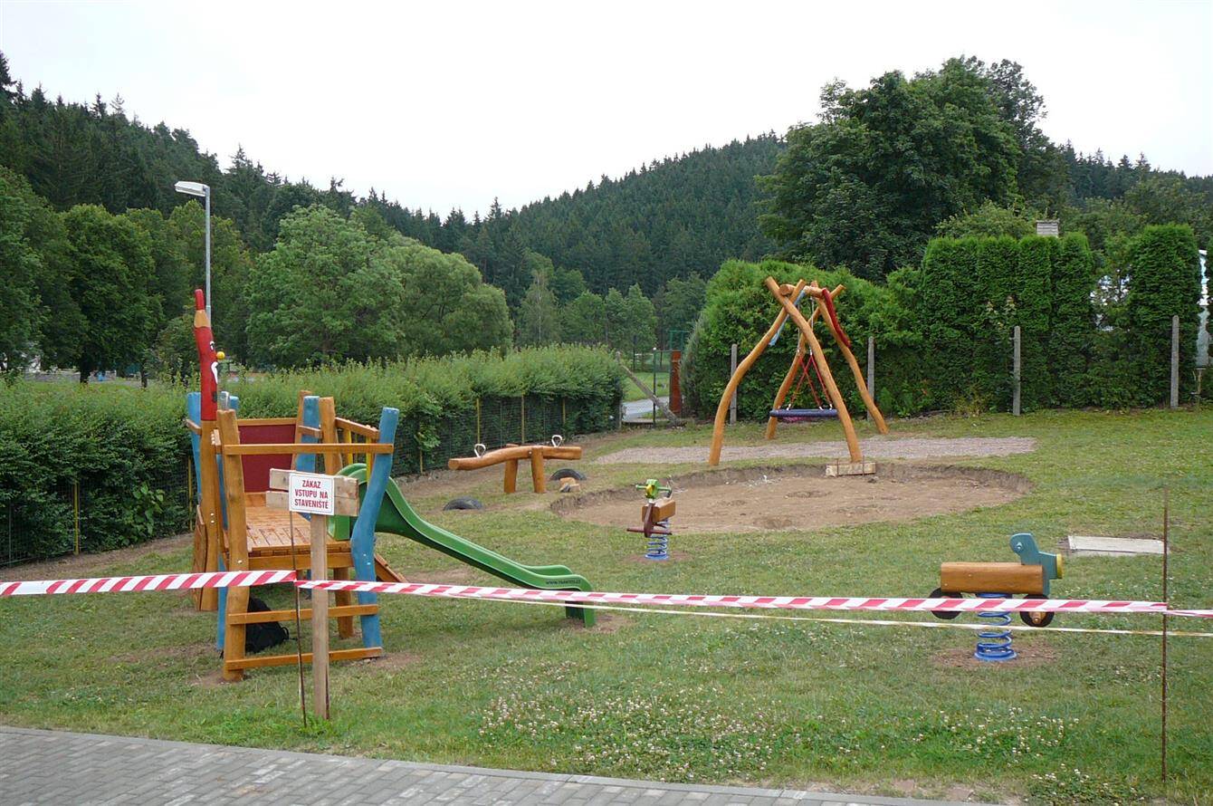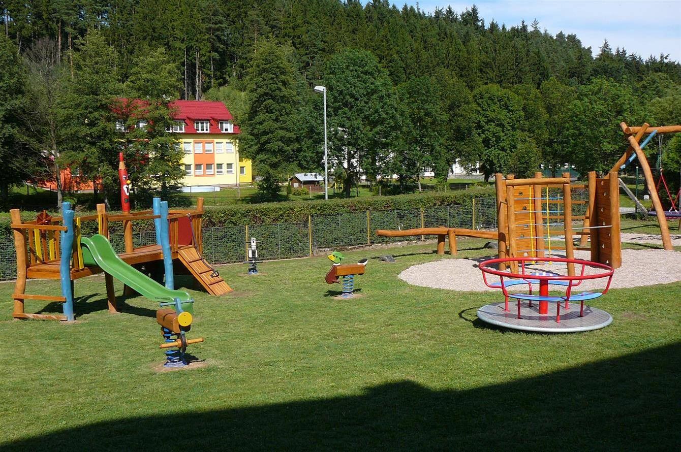 Dětské hřiště u budovy školy v Rožné čp 78