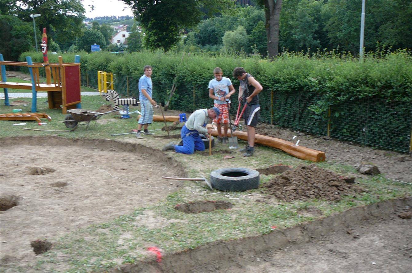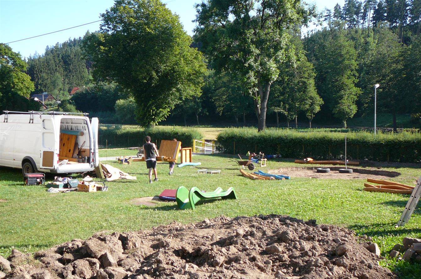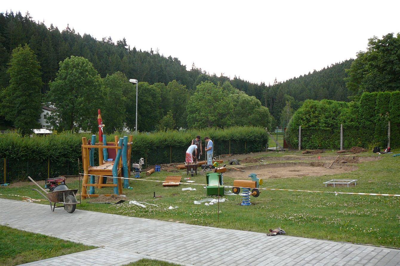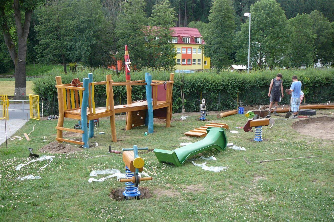 Dětské hřiště u budovy školy v Rožné čp 78