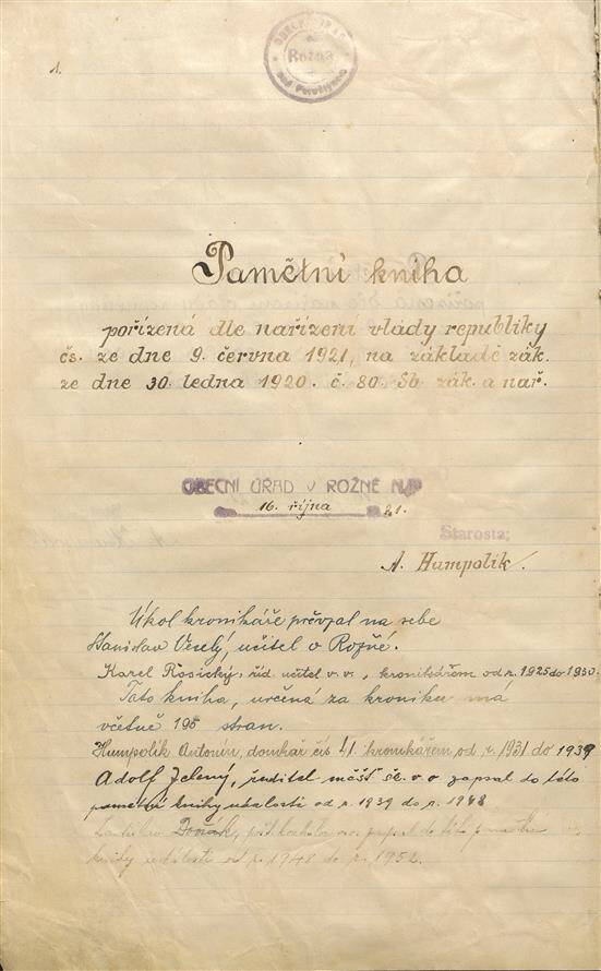 Kronika obce Rožné 1914-1952